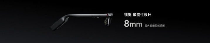 INMO GO3将原有分布在镜腿各处的器件与主板进行压缩与融合,置于镜腿末端,平衡了佩戴重量。镜腿做到了8mm宽度,是目前国内最细的智能眼镜镜腿。这让INMO GO3真正实现了智能眼镜的理想形态:从任何角度看,它都是一副“普通”的眼镜。